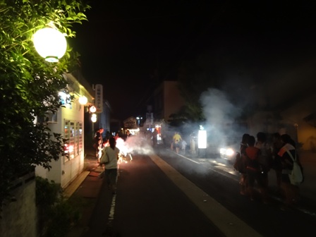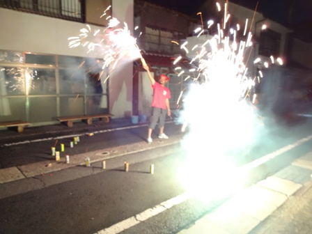 各所で花火はじまる   花火パトロール員2名で、花火マナーも伝授